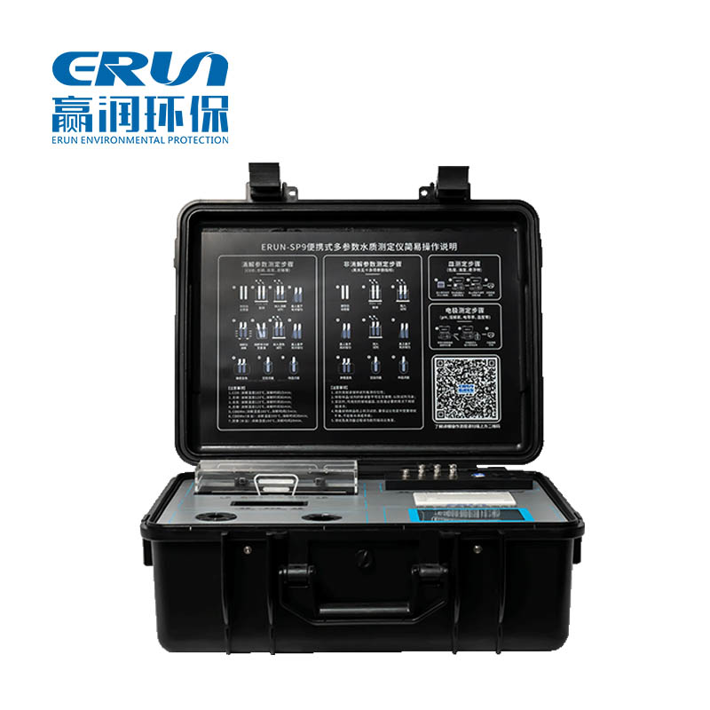 贏潤(rùn)集團(tuán)研發(fā)生產(chǎn)的ERUN-SP9便攜式多參數(shù)水質(zhì)分析測(cè)定儀是一款集分光光度法與電極法于一體的水質(zhì)快速測(cè)試設(shè)備,專為現(xiàn)場(chǎng)快速檢測(cè)和實(shí)驗(yàn)室多項(xiàng)目分析而設(shè)計(jì)。手提式多功能綜合水質(zhì)測(cè)定儀配備16通道光學(xué)檢測(cè)系統(tǒng),可精準(zhǔn)測(cè)定COD、氨氮、總磷、總氮、重金屬等60余項(xiàng)指標(biāo),同時(shí)支持PH、電導(dǎo)率、TDS、鹽度、溶解氧及水溫等參數(shù)測(cè)量,涵蓋從污染源追蹤到飲用水質(zhì)控制的多種應(yīng)用場(chǎng)景。便攜式多參數(shù)水質(zhì)檢測(cè)儀內(nèi)置雙溫控消解裝置,采用鋰電池供電,無(wú)需外部電源,在野外、無(wú)電環(huán)境中依舊穩(wěn)定運(yùn)行,是環(huán)境監(jiān)測(cè)、科研實(shí)驗(yàn)、污水處理廠、高